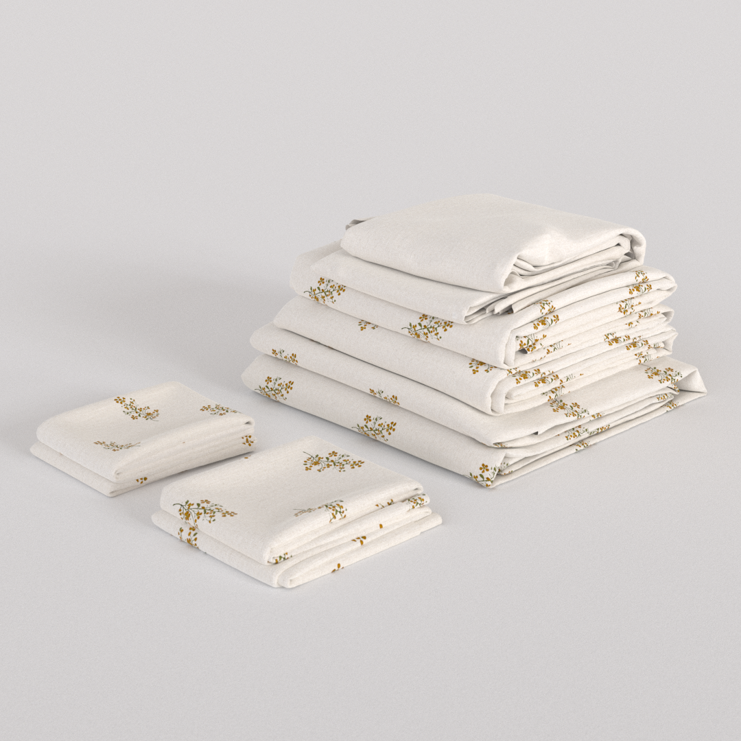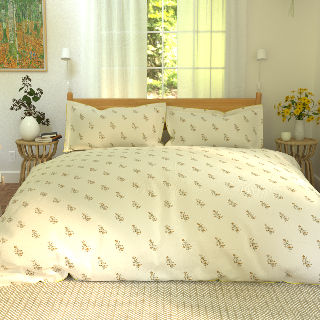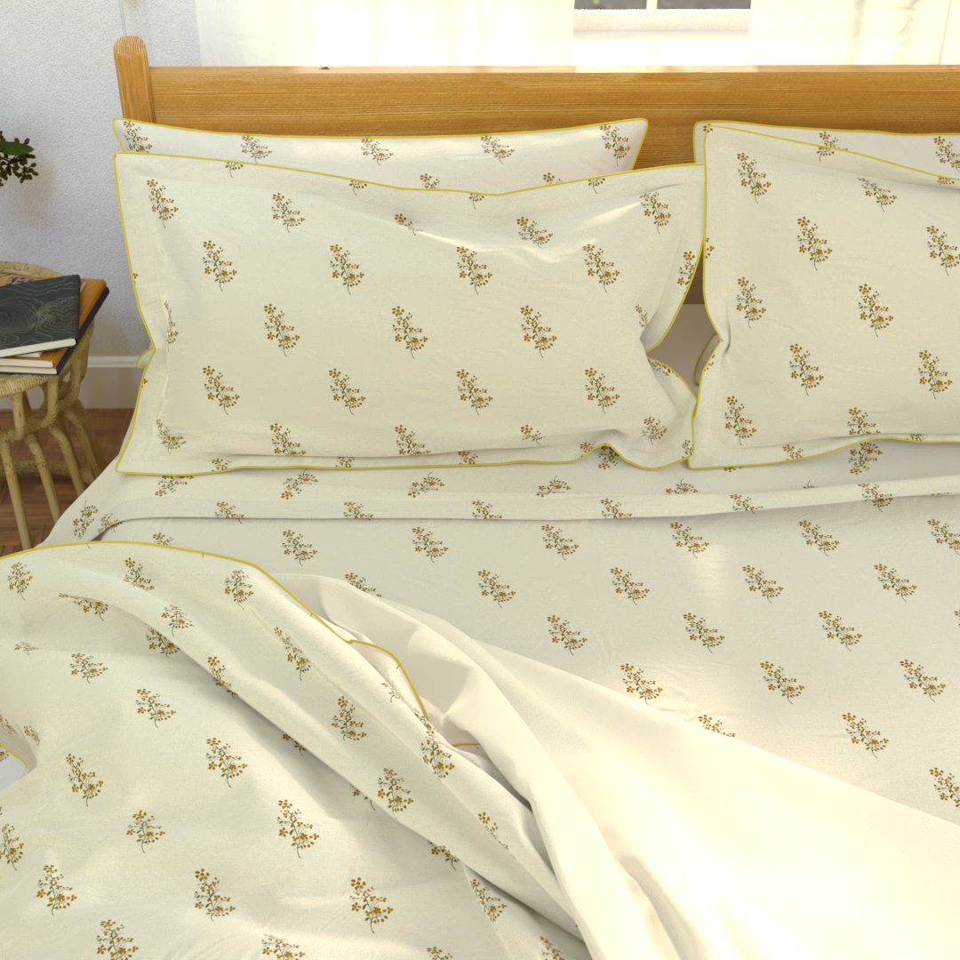A bright and delightful tradition for the ages, our colorful Fields of Gold Sheet Set features designs inspired by the hand-painted work of local Bangladeshi artisans. The motif makes a statement, printed on a white ground of soft 100% cotton percale or 100% linen.